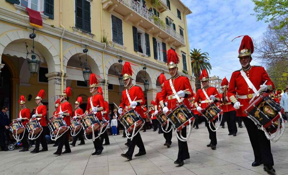 Throughout Holy Week, the island is filled with a solemn yet captivating atmosphere. Religious ceremonies take place daily, while Corfu’s famous philharmonic bands, such as the historic Corfu Philharmonic Society, accompany the processions with moving funeral marches.
