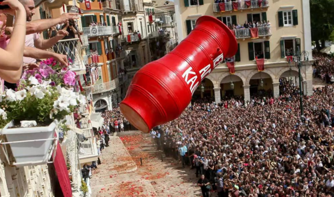 The highlight of Easter in Corfu takes place on Holy Saturday morning with the famous “Botides” tradition. At exactly 11:00 AM, locals throw large clay pots filled with water from their balconies, smashing them onto the streets below.